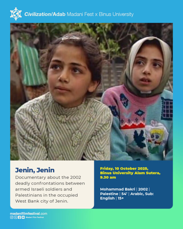 Madani Fest bekerja sama dengan @binusfilm menayangkan film Jenin, Jenin karya Mohammad Bakri