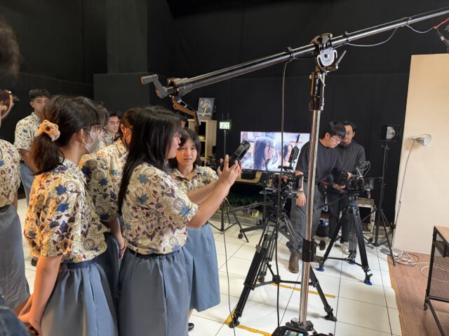 Para siswa sangat antusias dalam bertanya dan mencoba alat-alat yang ditampilkan. Rangkaian kegiatan ini berlangsung dengan lancar dan para siswa bisa mendapatkan wawasan praktis mengenai proses produksi film dan juga peluang karier di industri kreatif.